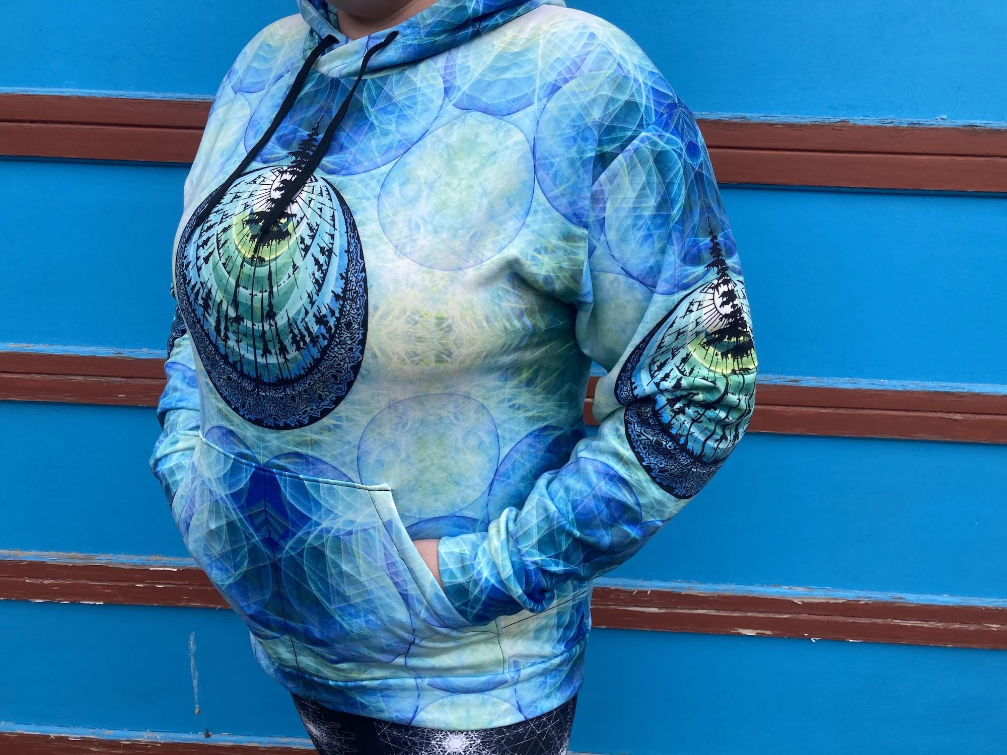 “Earth Trees” Hoody with my original fractal art combined with my old growth forest line drawing. Visit Shop